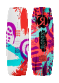 recognizing that wakeboarding is the only board sport where your hips and shoulders aren't parallel. A symmetrical shape with asymmetric features designed solely for the needs of the next generation of rippers. Your body is in an unbalanced position edging into the wake toe-side, so we created a thinner, sharper rail to help set an easier, more confident edge. Then on your heel-side your body is more comfortable in an aligned position, so we added a fuller vertical rail to generate more top water speed over the water. Come into the wake flat without much edge hold? No worries, we have more volume in the ends to help generate natural lift off the wake. Our Grom Glass offers a lighter layup for more feel with the water, and less swing weight in the air. A rockerline designed to assist a rider in a relaxed, neutrally balanced position. Be sure and check out the tropical scent hidden in the top of the board.